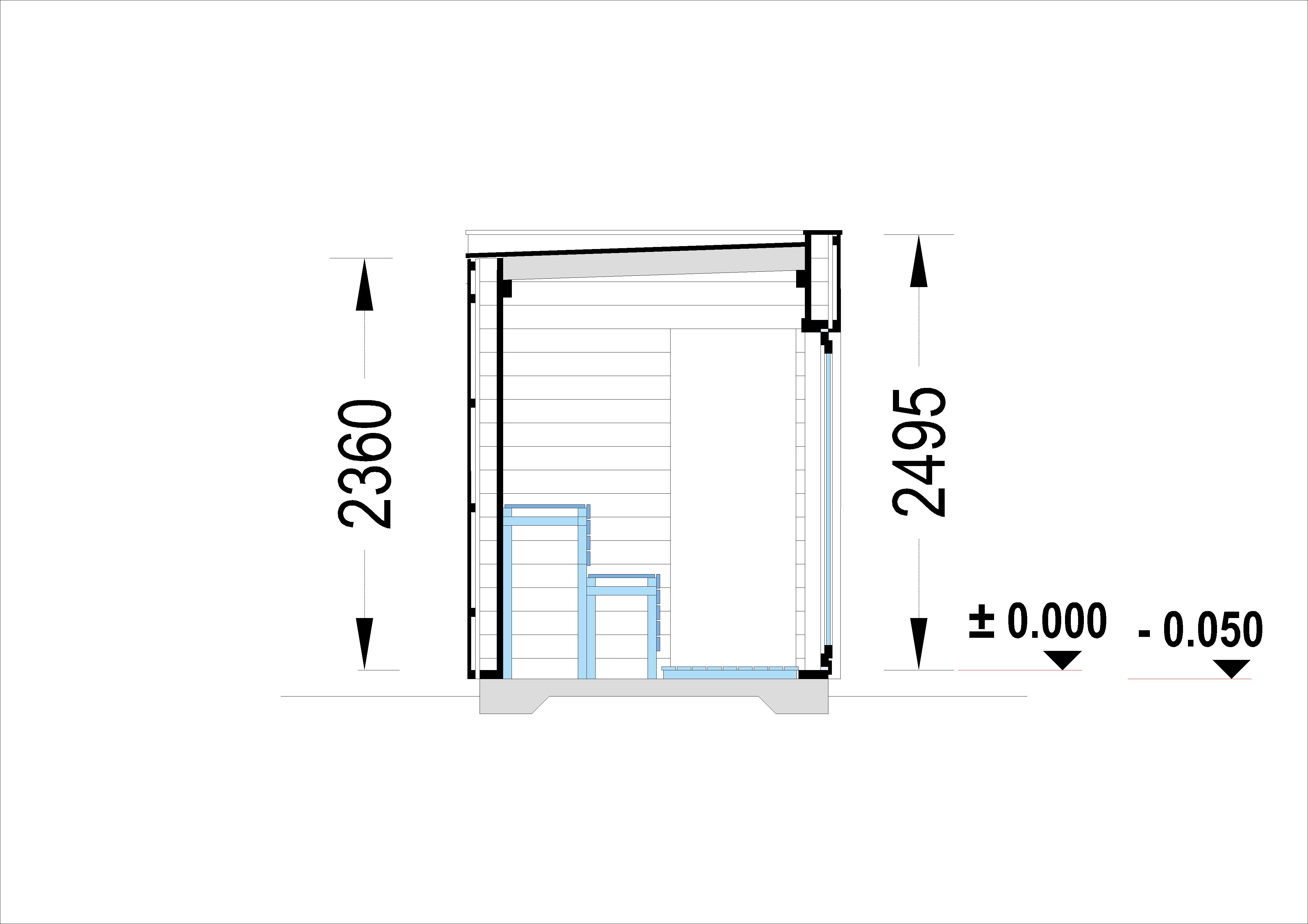 V cene je zahrnuté: steny s vertikálnym dreveným obkladom, okná s dvojitým zasklením a vonkajšie dvere, podlahové dosky, strešné dosky, saunové lavice, impregnovaná spodná konštrukcia.